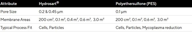 Sartocon® i Sartocube® kasete dostupne su s Hydrosart® i polietersulfonskom membranom, u raznim dimenzijama filtracijskih površina za potrebe mikrofiltracije, ultrafiltracije te dijafiltracije.