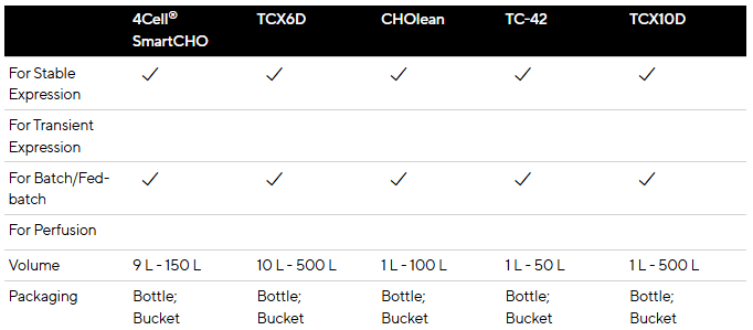 Sartorius nudi visokoučinkovite, standardne podloge i hranjive medije za uzgoj, dizajnirane za šaržne, šaržne i perfuzijske procese s različitim staničnim linijama jajnika kineskog hrčka (CHO). Sartorius CHO podloge i hranjive tvari podržavaju rast stanica i proizvodnju rekombinantnih proteina i antitijela u suspenzijskoj kulturi.