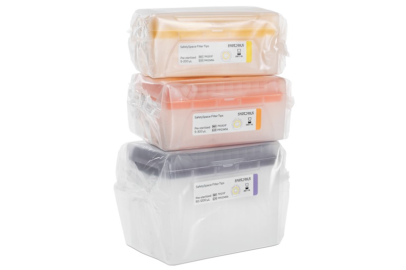 Sartorius nastavci pipeta sterilizirani su na SAL 10-6 (razina osiguranja sterilnosti) korištenjem elektronske zrake (beta zračenje) u skladu s EN 552 i ISO 11137.